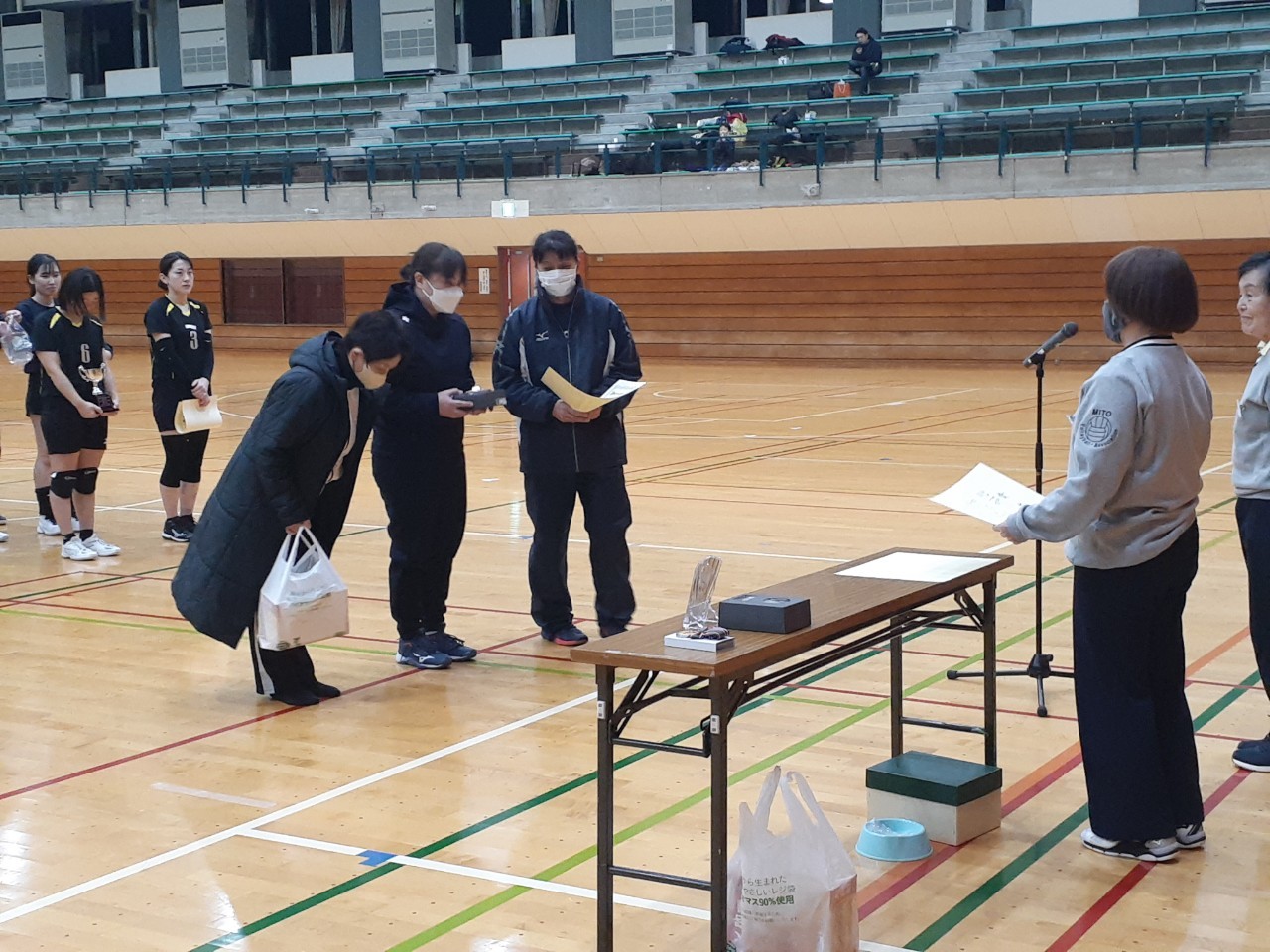 第61回水戸市民体育祭バレーボール競技開会式において、当協会創立50周年に 当り永年のバレーボール競技の普及発展の功績について水戸市長から石田会長初め 協会に感謝状が授与された。