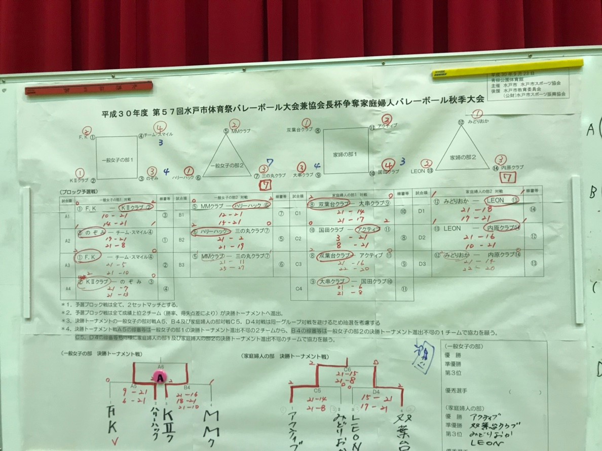 平成30年第57回水戸市体育祭バレーボール大会兼協会長杯争奪家庭婦人バレーボール秋季大会(試合結果) ※更新中